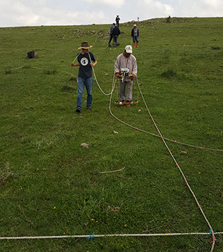 Fig. 5. Electrical resistance survey carried out as part of the geophysical fieldschool.