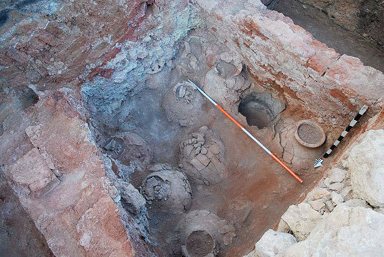 Late Bronze Age store room with in situ pithoi.