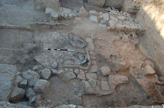 Archaeological evidence shows that Tell Qarqur possesses an extraordinarily long history of occupation, with a nearly continuous record of settlement from the Pre-Pottery Neolithic (c. 7500 BC) through the Mamluk period (c. AD 1450). Excavations have revealed significant exposures of the Early Bronze Age IV through Middle Bronze I (c. 2400-1800 BC), including a long-lived temple, an administrative building, and a food processing area. A terminal Late Bronze Age (c. 1150 BC) destruction on the high mound was followed by a long history of Iron Age occupation. A stone-built gateway and fortification system was constructed in the Iron Age II and continued in use through the Hellenistic period, while Iron Age domestic structures have been found across the site. Later remains include a Late Roman church complex on the low mound, a Crusader-period town and fort, and a Mamluk village at the southern base of the mound. The long history of occupation at Qarqur, combined with meticulous excavation methods and intensive sampling of ceramics, botanical and faunal remains, provides a nuanced view of the local material culture sequence, as well as insights into changing agricultural and subsistence strategies throughout the Holocene.